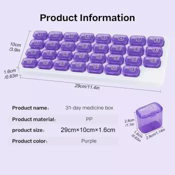 31-Day Monthly Pill Organizer with Removable Daily Compartments