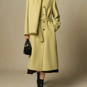 Elegant 89.9% Wool Cashmere Plus Size Double-Breasted Winter Coat with Scarf