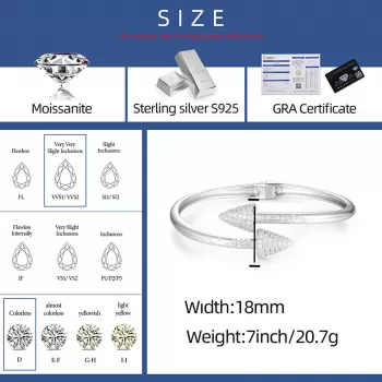New S925 Moissanite Arrow Men Cuff Bracelet for Women - Iced Out Hip Hop Sterling Silver Bangle