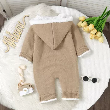 Newborn Knit Baby Romper Hooded Long Sleeve Winter Jumpsuit for 0-18M